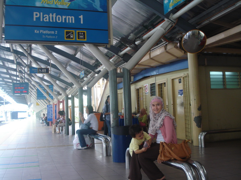menunggu kedatangan KTM komuter Mid Valley ke stesen KL Sentral