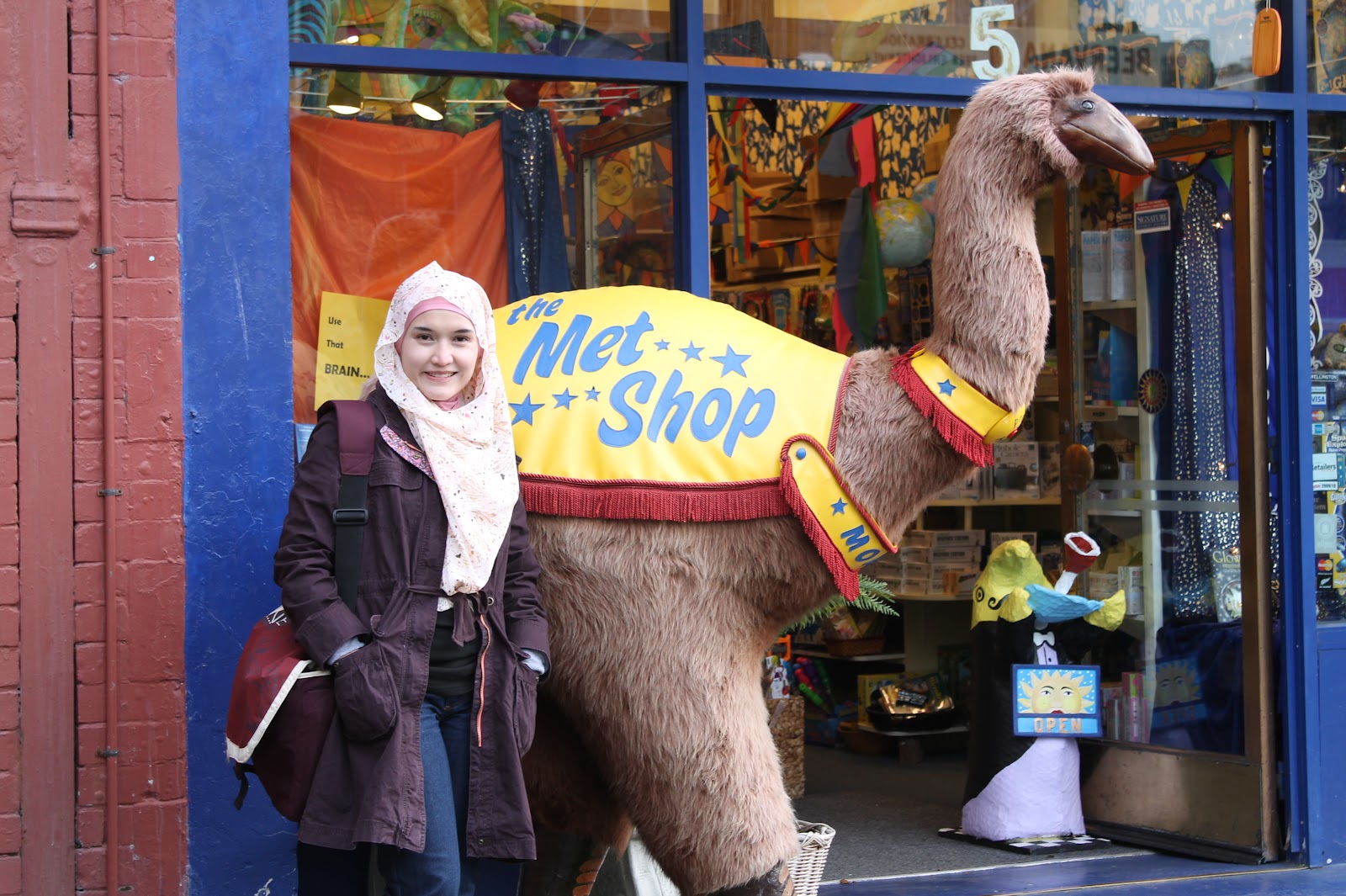 Dalam perjalanan di sepanjang cuba street, saya menemukan sebuah toko yang unik, di depan toko tersebut ada sebuah boneka besar "burung unta".. feel like a child, seneng banget dan akhirnya foto deh bersama si burung unta.