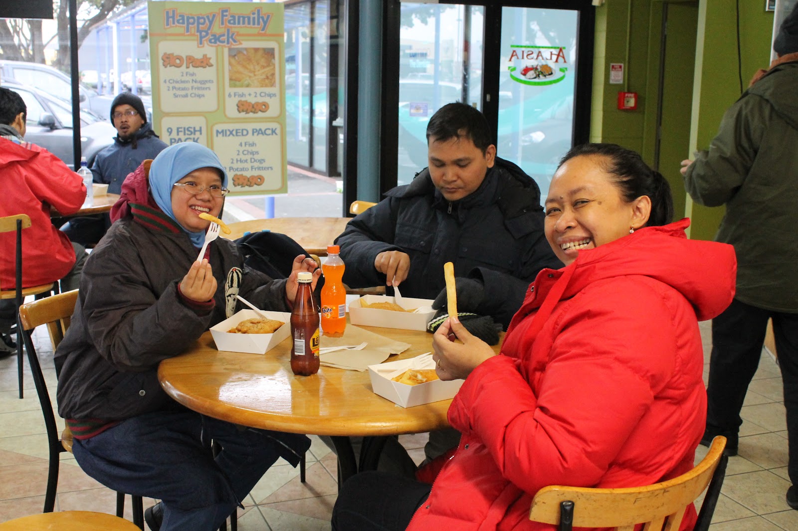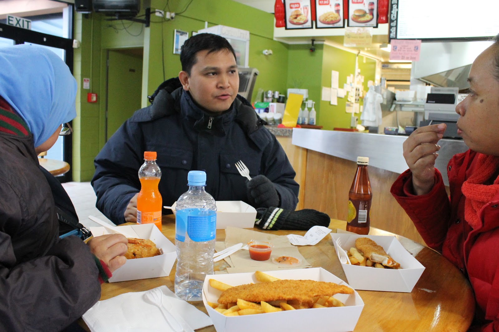 Warga Wellington menyebut Jum'at malam sebagai "fish and chips time" mereka berkumpul bersama teman atau keluarga untuk menyantap makanan ini.. mmm.. kebayang deh suasana dingin sambil makan fish and chips.