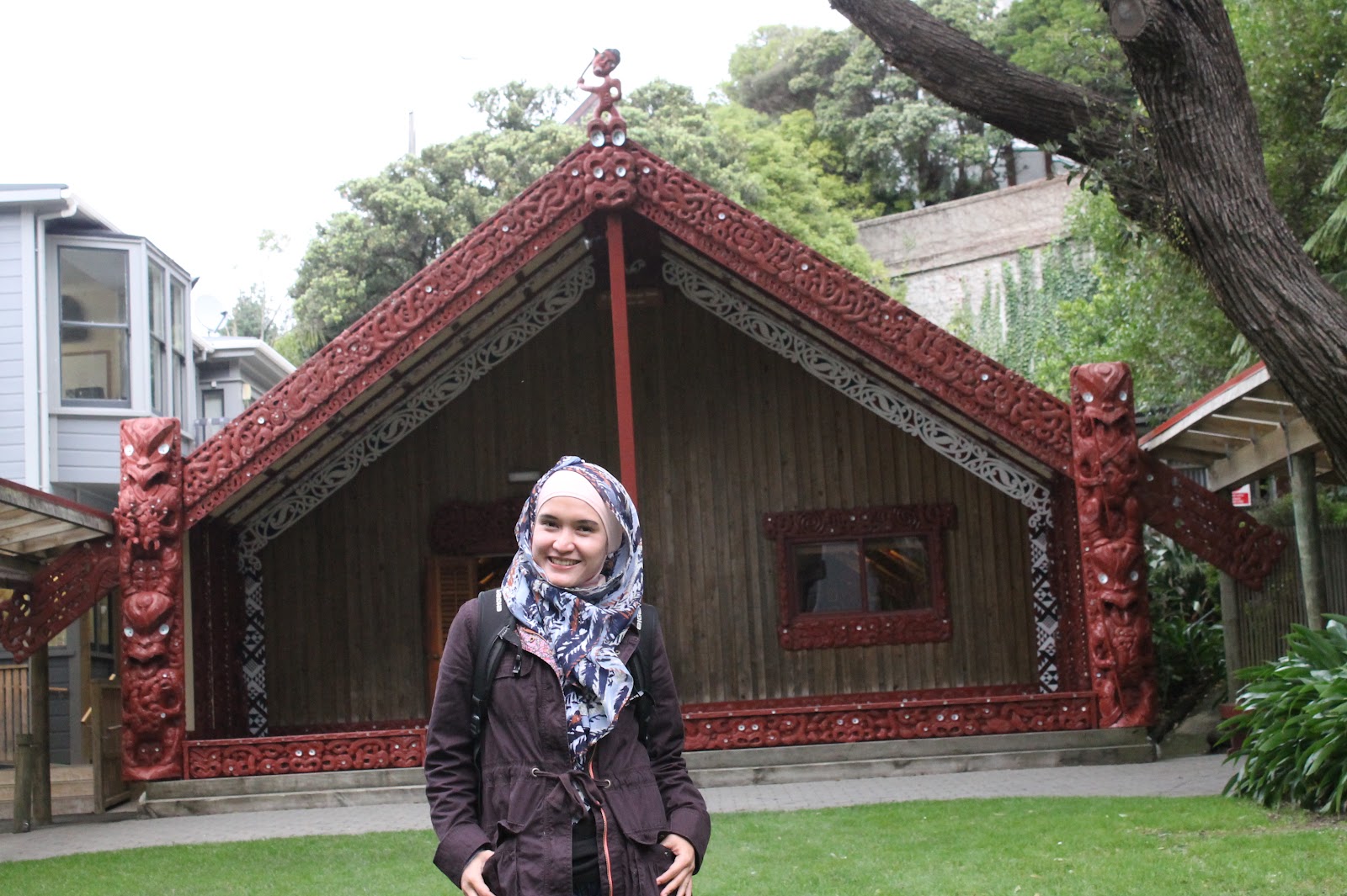 dengan lukisan dan ukiran-ukiran Maori mulai dari dinding hingga bagian atap.