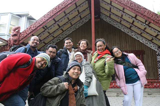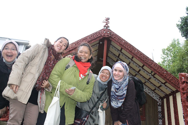 rombongan yaitu rombongan tamu (rombongan kami) dan rombongan penyambut dari suku Maori. Kami berdiri