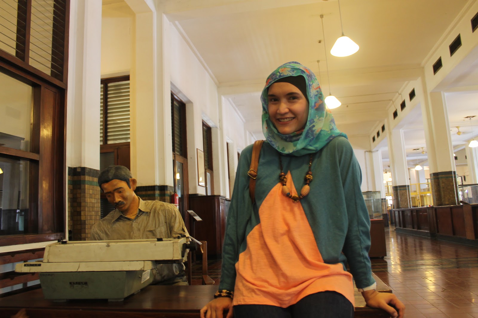 Kesan pertama setelah memasuki meseum ini adalah seperti sebuah kantor pos? ruangan dengan meja panjang dan ada timbangan barang yang biasanya ada di kantor pos.