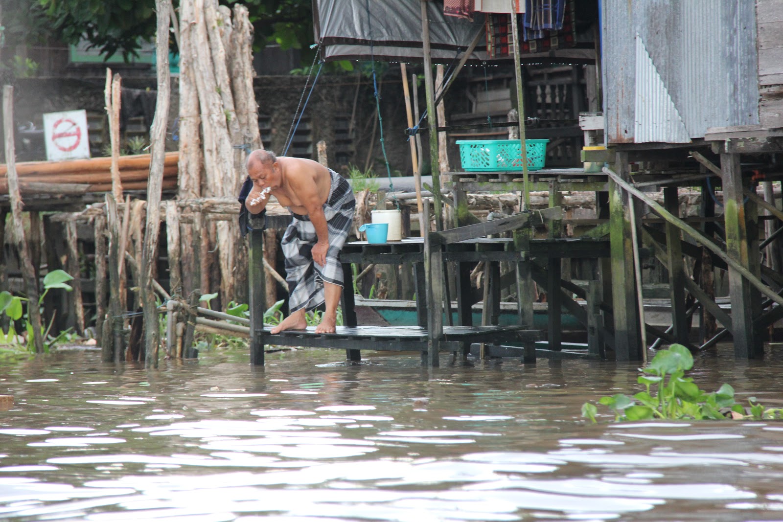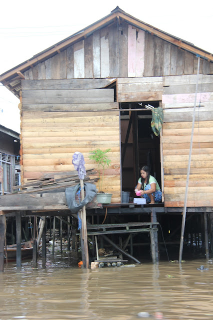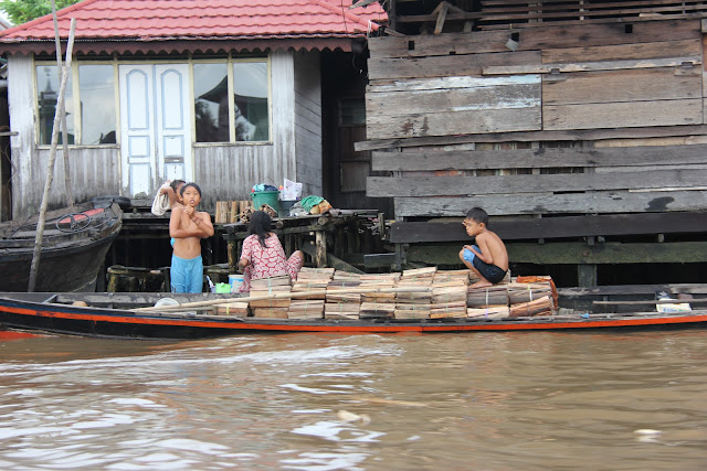 Di sepanjang pinggiran sungai Barito ini, juga terdapat pemukiman penduduk, saya dapat menyaksikan secara langsung aktifitas mereka, seperti mandi, mencuci pakaian dan bahkan berjualan atau berdagang.