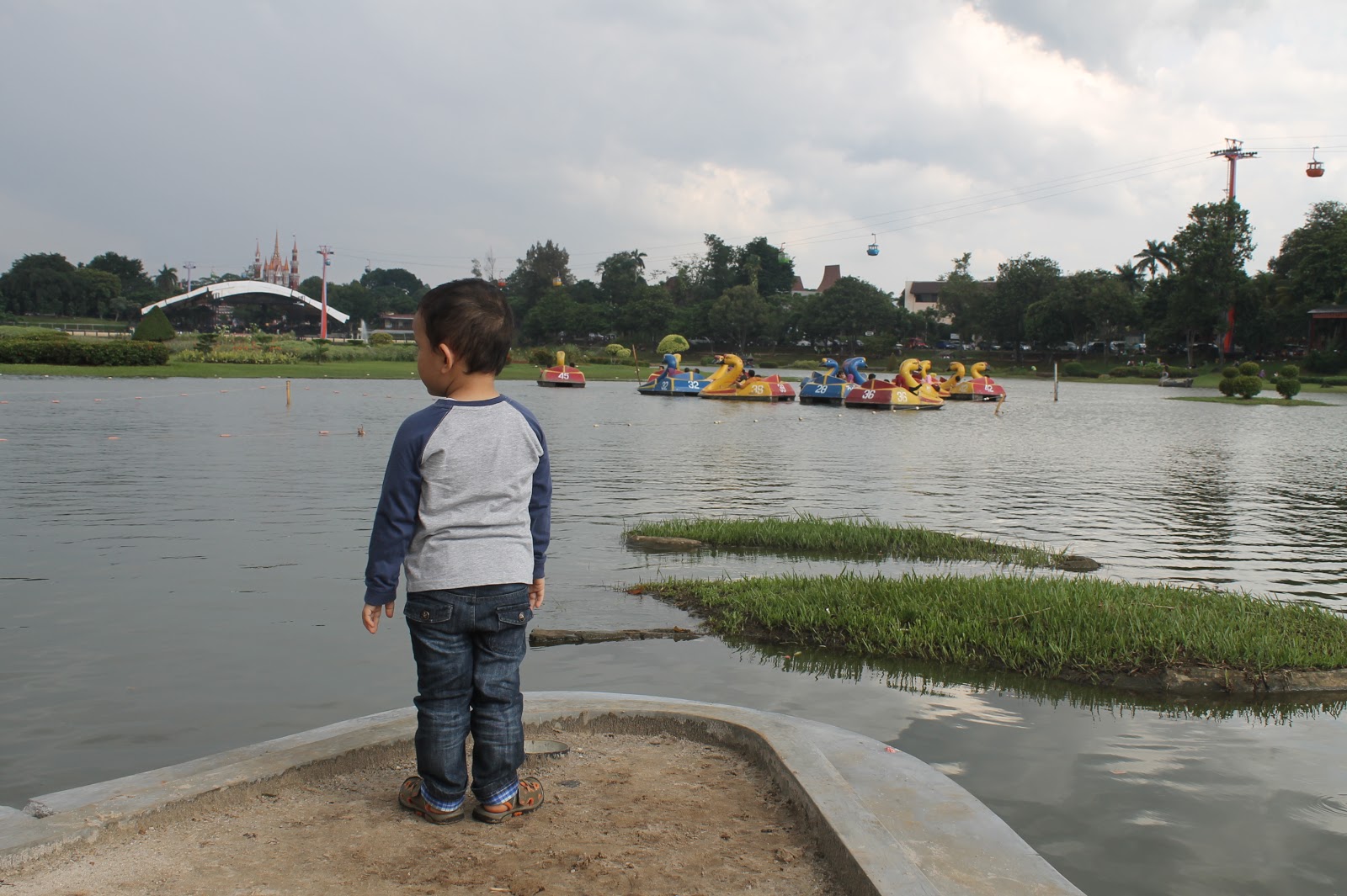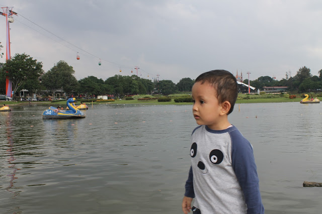 Yayaya.. kemacetan kembali terjadi di jalan menuju TMII.. Alhamdulillah sampai di TMII jam 2pm dan ternyata TMII penuh sekali.. huhu cari parkir saja susah dan jalan tersendat.. Ok jangan panik dan tetap cool hehe. Kunjungan ini juga pertama kali untuk Keenan, tempat pertama yang kami kunjungi adalah danau.. nampaknya Keenan sangat suka.. :)).