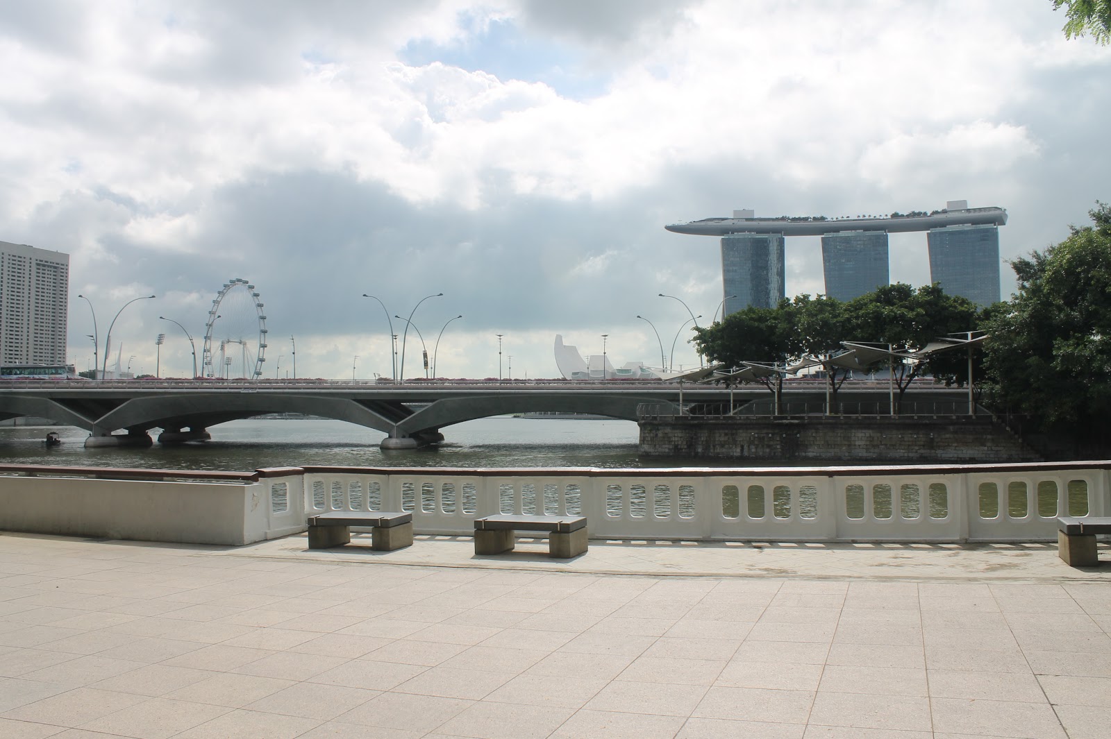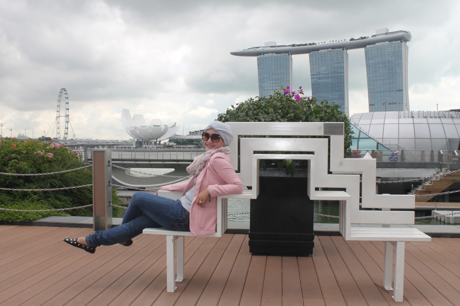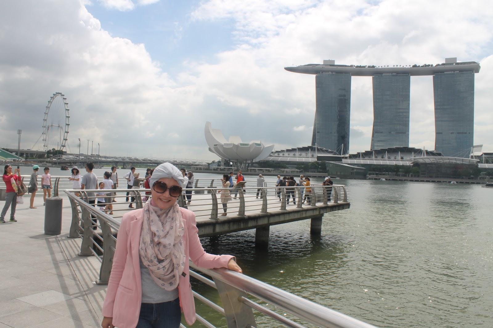 Banyak aktifitas yang dapat saya lakukan disini, menikmati indahnya Esplanade park, berfoto dengan patung raffles, juga berfoto dengan patung kepala singa di Merlion park, dan dapat juga menikmati Singapore River Cruise. Dari lokasi ini kita juga dapat melihat Marina Bay Sands yang mengagumkan. Bentuk bangunannya yang sangat indah membuat siapa pun yang melihat pasti takjub. Bagaimana caranya ya membuat kapal laut itu ada di atas tiga gedung?