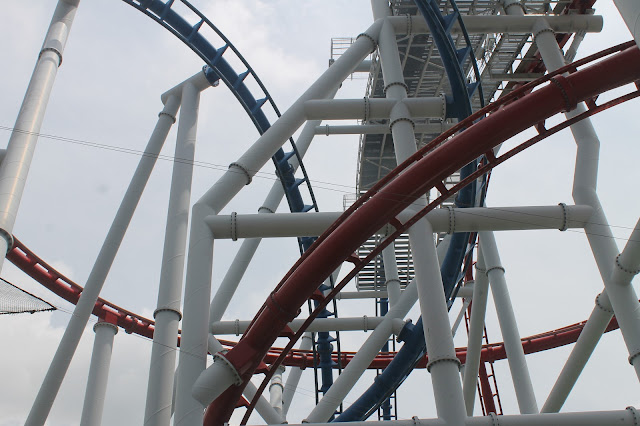 umumnya (rel dibawah) sedangkan roller coaster Cyclon, tempat duduknya terbalik (relnya ada di atas). Kedua roller coasters ini dijalankan bersamaan dan
