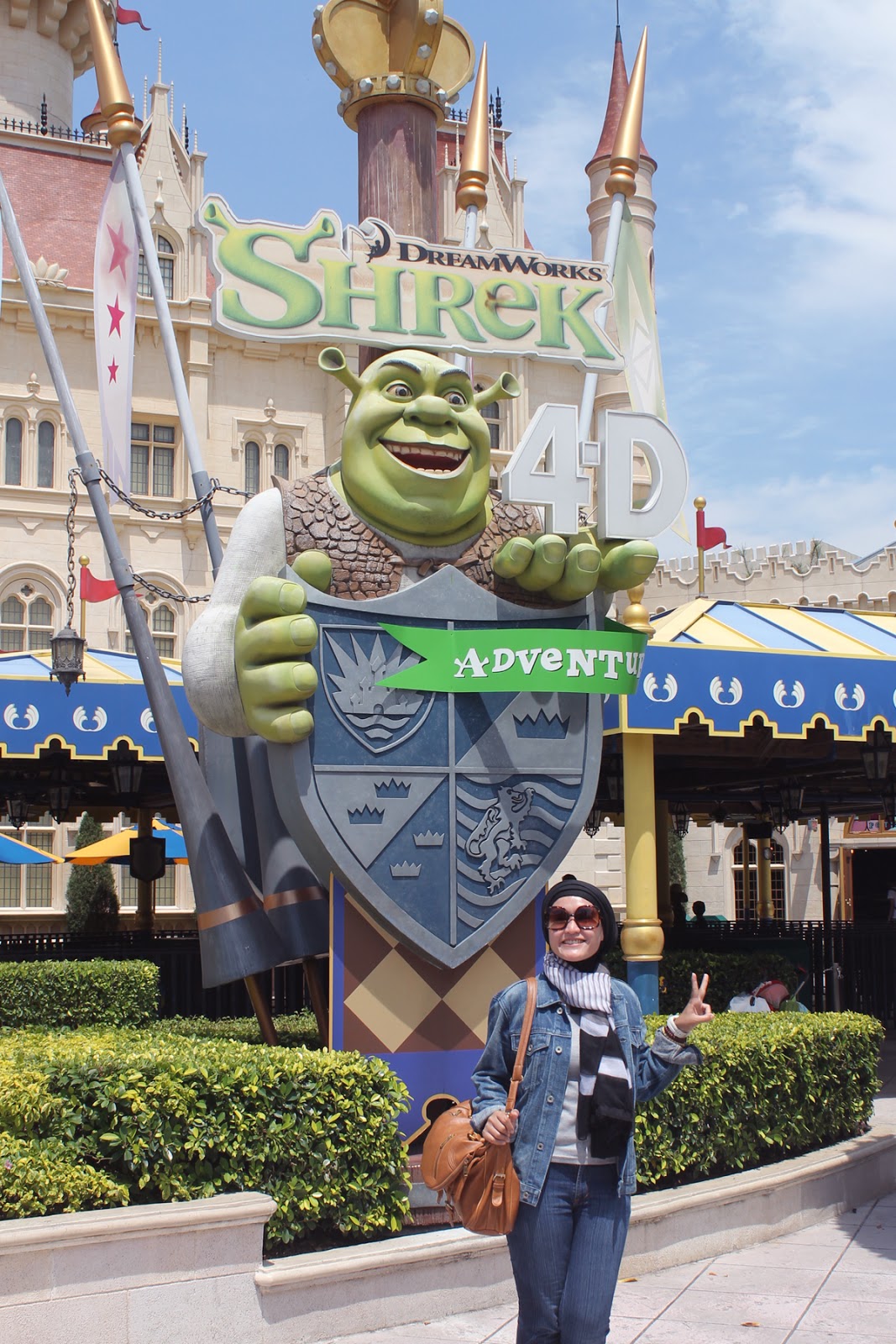 Far Far Away. Dalam area ini kita dapat menyaksikan pertunjukan Shrek 4-D Adventure, kisah ini tentang perjuangan Sherk menyelamatkan putri Fiona yang diculik setelah menikah dengan Sherk. Efek 4 dimensinya terasa banget, siraman air, goncangan kereta kuda dll.
