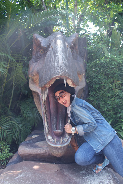 menaiki beberapa wahana. Yang pertama adalah Jurassic Park Rapids Adventure,