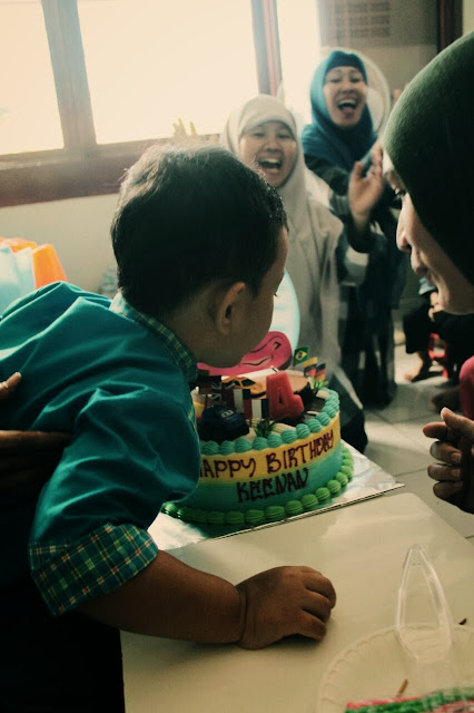 tanggal 1 Desember 2013 berusia 4 tahun, nah tiup lilin perdananya anakku