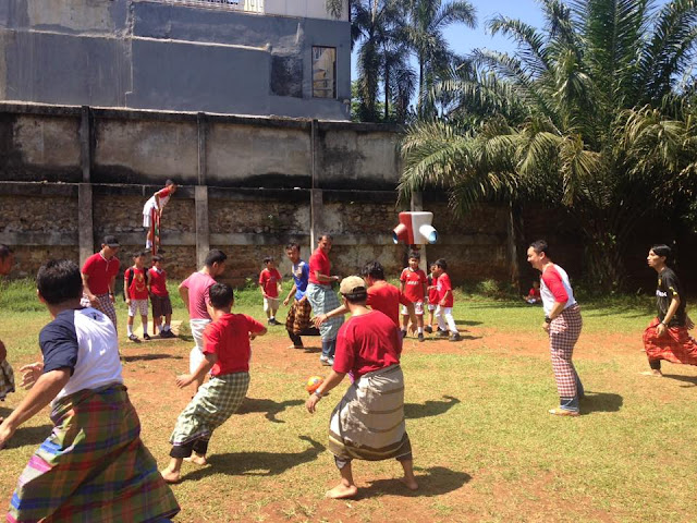 Sarung” lomba ini khusus untuk para Ayah melawan para Guru Pria. Suami saya